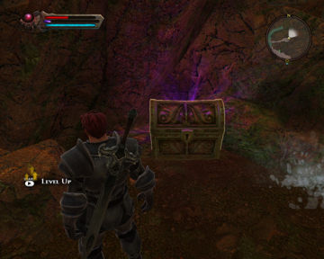 进去后消灭几只小怪物,打破前面挡着的箱子,就看到了这个散发着紫色魔法能量气息的魔法宝箱