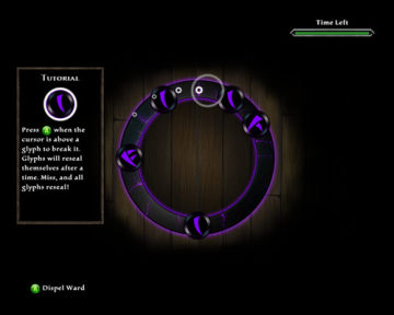 解法:白色圆环会不停绕大圆环,在右上角时间条消耗完之前,按照图案复杂程度在白色圆环经过有图案的小圈时按A键即可,即先点中最简单的一条图案的所有小圆圈,然后是两条的小圆圈,最后是三条的小圆圈,如果失败的话可是会受到魔法反噬会掉血的哟,得到的物品也会差很多