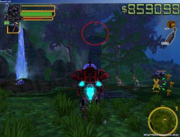 3、精灵领地中一个恶心的弓箭手炮台位置,注意,跳到这个炮台上会看到很高处还有个炮台,喝燃料(也就是滚轮到火箭炮武器那里按E)跳上去有一枚。
