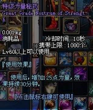 这个东西是60年代,比较常用的药水,可是在70年代在有了特级力量药水之后,他的确可以算作淘汰了,不过有人问了:23点力量虽然少,可是600的时间还是比较可以的,但是请看下面的图片