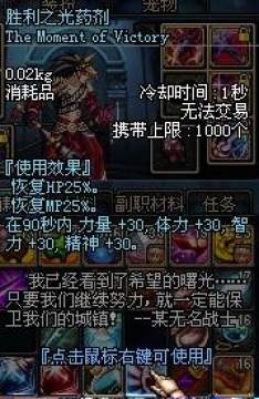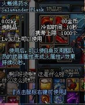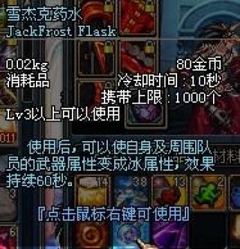由于此物品制作方法以及材料的稀少,导致此物品价格过高,可这些并不影响它的实用效果,短短的1分钟时间内,你可以不惧怕任何怪物,《您还在为刀疤鼠的其身震所烦恼吗?来一瓶霸体药水,春哥为您保驾护航》