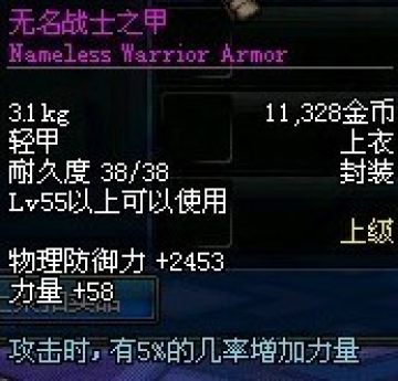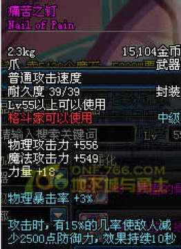 散件神器,喜欢穿散装的轻甲类职业有追求了。力量+60前后,并且攻击的同时5%几率增加20点力量。提升的力是相当之高的!!5%的几率,DNF玩家都知道这个几率在DNF里面基本就意味着一直持续了。无内置CD,可以连发触发,但是不能叠加。