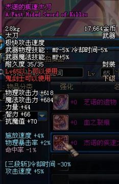另一个是攻击时,有5%的几率增加100点力量减少100点智力,持续20秒.