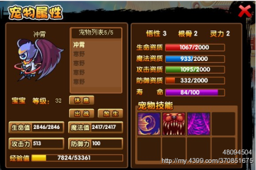 2.纯攻击宠,这种宠的话要看的是资质~攻击资质起码要