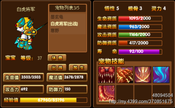 精,不错白虎的技能就不说了,挺吓人,连二郎神也可以秒了玄武