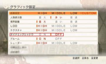 真三国无双6画面有竖线问题解决方法 来源: 飞翔小编 2012/3/12 10:31:43 浏览量:1018 在真三国无双6游戏中画面有竖线,看的人物很不协调,怎么样才能解决真三国无双6画面有竖线问题呢?请看下文详细讲解 真三国无双6画面有竖线的原因: 进了356,什么都好,就是影子和地面时不时有竖线,其实这是画面设置问题 关键是红框里的设置,默认高画质是ON,改成OFF,如果这个我没搞错意思的话应该是动态阴影 经过上面设置以后就可以解决掉这个问题了。