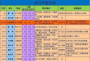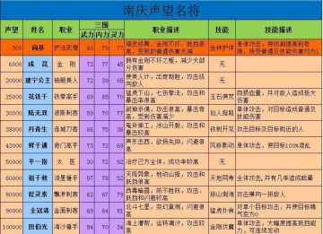 寻侠声望家将大全(详细介绍) 来源: 飞翔小编 2012/3/18 10:34:51 浏览量:10377 寻侠中声望名将是非常强大的,如何获得各种好的声望名将当然是从西安了解他们开始。以下则是寻侠中寻侠声望家将的一览大全,来看看吧 三个家族声望名将一览表(含西川、北齐、南庆) 南庆 北齐