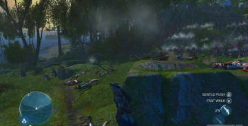 在这些放出的实际游戏截图中可以看出育碧公司已经把刺客信条系列的游戏引擎做出了进一步的优化。在本作《刺客信条3》中随处可见的花花草草,河流小溪,朝霞彩云,一下子把玩家带入这如诗如画的田园风格的游戏环境里,跟前两部所体现的建筑风格完全不同,到处都是山水花草。由于本作发生的年代是美国独立战争时期,所以在游戏截图上可以见到成百的美军或者英军的作战部队,这是在前两部作品中体验不到的。而且玩家所操作的主角要在这大自然的环境下隐蔽杀敌,无疑为游戏增添了一丝难度,希望在游戏的正式作品发售后,能在这些大魄力的战争场面下保持数百人的NPC同时,能够保持稳定的游戏帧数,这样才不会有损游戏体验。以上是本编对该作游戏截图中呈现出内容的评测,希望育碧能给我们游戏玩家又一次美好的游戏盛宴。