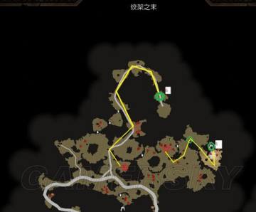 这几张区域地图里,用红色五角星标出来的是树根傀儡,皮糙肉厚的,身旁还总有几个小精灵小妖精什么的。黄色六角星标注的是树妖啦,如果觉得它们等级低,那就无视吧。黄色线条,当然就是推荐的传送+跑动路线了。再然后就是用SL大法砍死他们攒装备了。