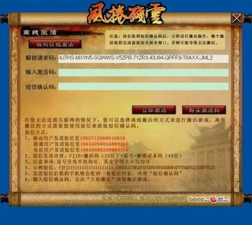 如果您无法访问互联网,您可以通过手机短信的方式进行游戏激活。