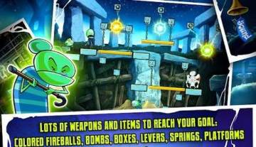 游戏目前有三个大关卡,共计45个小关卡来进行挑战,游戏中会出现100多种不同的僵尸需要消灭,还会有BOSS级别的僵尸进行挑战。游戏的武器也有多种,包括火球、炸弹、木盒等等,而需要用的机关则有杠杆、弹簧等。