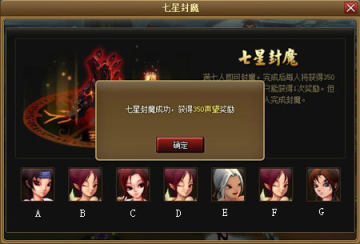 话说这‘七星封魔’有何用处呢?(矮油妹纸帅锅们,我们可不是真的封魔哦,是要获得利润的。)350声望有木有心动?更多的超强伙伴参加斗争有木有心动伙伴召唤不仅需要你的等级,更多的是需要各位的声望值啊,这声望值来之不易,所以各位绝对不可以放弃能够得到他机会。