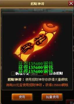 现实中管理资金的渠道有很多,活期存款、定期存款、认购理财产品、基金定投、购买股票等等,我们要根据自己的能力多方面进行投资,不能单一化。这就像一个足球队,不仅要有前锋和后卫,还要有守门员。在神仙道里面,消费元宝也要如此,玩家要多元化、多渠道地使用元宝,千万不要只用元宝来做同一件事。我曾经见到我们服务器有的玩家说,每天只使用元宝的“招财神符”功能,认为这样元宝用的最值,其实这种想法是错误的。我自己总结了一下游戏里面几项应该消费元宝的地方,包括: