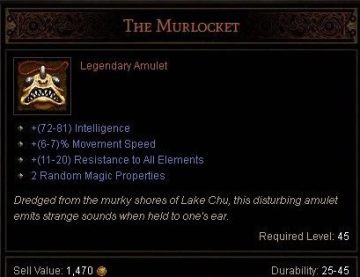 鱼人在暗黑3里成为了一条项链。上面这条鱼人链的图标就是一个鱼人脑袋,道具说明也表示这条项链产自鱼人的村庄,据说放到耳边便能听到鱼人呜哇哇哇哇的声音。
