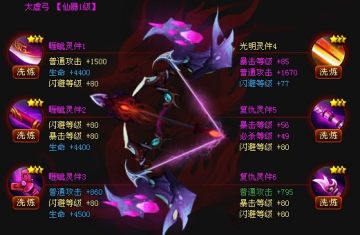 这个版本,弓应该以普通攻击、绝技攻击、为主,暴击和必杀放在最后。这样的弓依然是以攻击为目的的,虽然不暴击,但是你会发现敌人也不怎么格挡,也不太闪避(遇到本版本的神剑灵算你倒霉)
