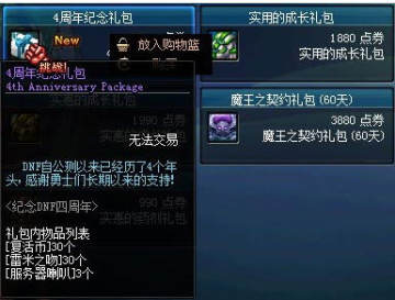 为了纪念地下城与勇士开放的4周年,腾讯这次特别放出了4周年超特价礼包。