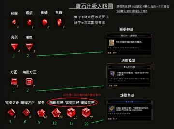 当然噩梦地狱炼狱怪物掉的宝石也会比较高等啦,不会真的要你去刷一百五十万颗..(补充:也有可能普通掉碎裂/噩梦瑕疵/地狱普通/炼狱无暇,Lv5以上要靠合成来升级)
