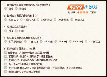 要进行DNF体验服资格申请,首先要进入申请网站(点我进入资格申请网站),阅读用户手册并选择同意,然后就需要回答几个小问题