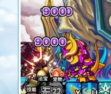 3种攻击方式:刺,劈,扫。复活前900,复活一次1200,复活3次及3次以上1400.是天庭战神的普攻(杀伤力都这么大,坑爹)