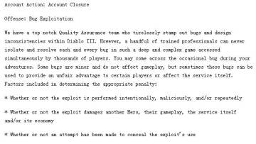 无论这个漏洞是否影响到其他玩家的人物,或者游戏体验,游戏服务和游戏经济系统。