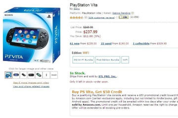 E3电玩展过后,索尼官方虽然没有宣布PSV降价销售的计划,但是一些零售商为了促进掌机PSV的销量做了一些活动。例如美国购物网站亚马逊对PSV展开了降价促销活动,现在购买WIFI版或3G/WIFI版主机即可返现50美元。以原价249美元的WIFI版为例,玩家现在可以199美元(约人民币1268元)的低价购得。