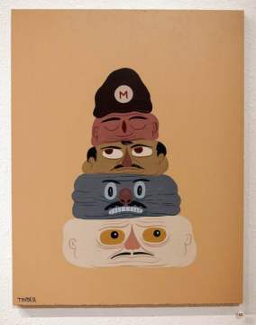 体验游戏的艺术 “Game Over”展览照片欣赏 来源: 飞翔小编feichenpan 2012/6/11 15:31:40 浏览量:454 随着科学技术的发展,电子游戏已经普遍到进入千家万户,成为人们业余休闲的最佳娱乐方式之一。现如今游戏已经成为了继绘画、雕刻、建筑、音乐、诗歌(文学)、舞蹈、戏剧、电影(影视艺术)之后人类历史上的第九艺术。就在上个星期的洛杉矶,除了热闹的E3电玩展外,还有一场由Giant Robot杂志举办的名为“Game Over”的艺术展览。展出了来自全世界最受欢迎的艺术家的一些以电子游戏为主题的艺术作品。 下面是“Game Over”的艺术展览的艺术作品图片,这些艺术创造都来源于游戏。