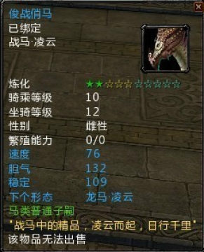 1). 10级坐骑 战马凌云 如图: