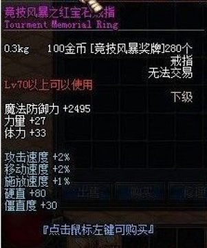 奖励兑换:可以使用竞技风暴奖牌在NPC维尔·克鲁和格林·林德处兑换专为PK打造的神器级别的装备:竞技风暴系列首饰。