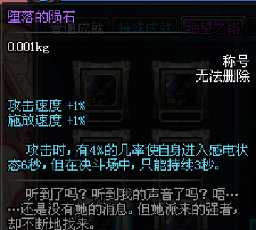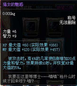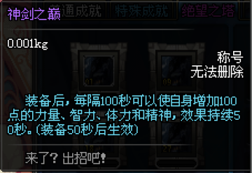 dnf绝望之塔称号大全 来源: 飞翔小编 2012/6/17 11:44:20 浏览量:1464 称号系统是DNF下一次改动的特点,绝望之塔也相应推出了一系列称号成就。让我们先抢先来看一看这些绝望之塔中的称号吧。