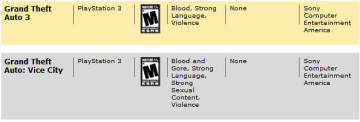 美国娱乐软件分级委员会ESRB为PS3版的《GTA3》和《GTA3罪恶都市》进行了评级。一般来说,这种情况表示这两款游戏会移植到PS3上并在PlayStation Store中发布。虽然没有经过Rockstar或SCEA公司的确认,但ESRB是极度可靠的消息来源。在大家等待《GTA5》之中,可以重温PS2上的经典作品《GTA3》和《GTA3罪恶都市》了。