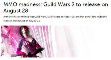 3D奇幻网络游戏《激战2》发售日公布 来源: 飞翔小编 2012/6/29 15:28:24 浏览量:426 3D奇幻网络游戏《激战》想必有不少玩家有还有印象吧,时隔5年ArenaNet终于确定了其续作《激战2》的最终发售日,游戏预计今年在8月28日发售,并在7月20-22日间举行最终beta版的体验会。 ArenaNet的联合创立者之一的Mike O’Brien说道:“我们将会提供给玩家们曾经陈诺的在一个巨大的,共同分享的世界中冒险的游戏体验。” “经过5年的创意,制作,润色,《激战2》的发布是我们的一个里程碑。我们期待着全世界的玩家们一起来探索这个世界并缔造属于他们自己的故事。”
