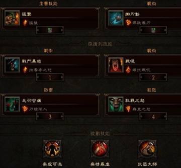 飞斧(弹跳)是一次击中三个目标的技能,也是为了有3次暴击的机会,有这两个技能就一定不会断怒了。