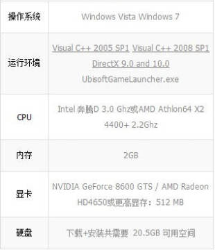 2.游戏中需要安装Visual C++ 2005 SP1 Visual C++ 2008 SP1 DirectX 9.0 and 10.0 UbisoftGameLauncher.exe等插件才可以正常运行,看看你是不是缺少那个。