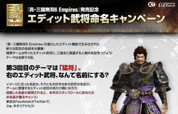 《真三国无双6帝国》宣传造势 猫版织田信长公布 来源: 飞翔小编feichenpan 2012/7/4 10:04:01 浏览量:412 光荣公司近日为《真三国无双6帝国》宣传造势将在游戏中推出4名原创武将,并且开展向玩家征集武将姓名的活动,目前已经到了第三个武将的姓名征集,日语无压力的玩家可以到官方网站参与活动。官方还公布这次游戏的初回特典,将有包含前作《真三国无双5》和来自手机游戏“100万人无双”的猫版织田信长。 游戏初回特典: