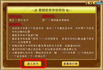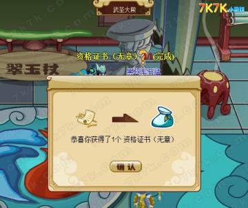 目前的资格证书还是无章的哦~继续和石猛对话,原来第一个测试是真假武圣爷爷测试(真假武圣副本的挑战时间为周五至周日全天)