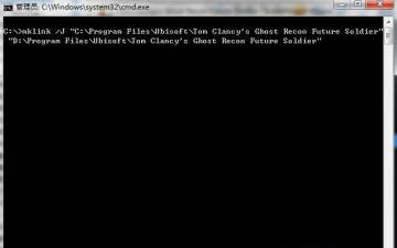 在CMD命令窗口中输入:mklink /J "C:\Program Files\Ubisoft\Tom Clancy's Ghost Recon Future Soldier" "D:\Program Files\Ubisoft\Tom Clancy's Ghost Recon Future Soldier"