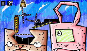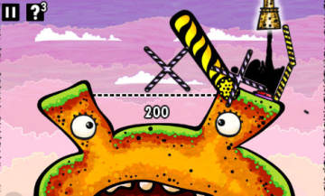 图片左上角的问号是游戏的提示,如果你实在不知道怎么过关的话就可以用这个提示信息,但是还是少用不仅会减分而且也失去了游戏的乐趣,大家还是多动脑筋慢慢想。第三关你需要把石头放到两个大嘴里。