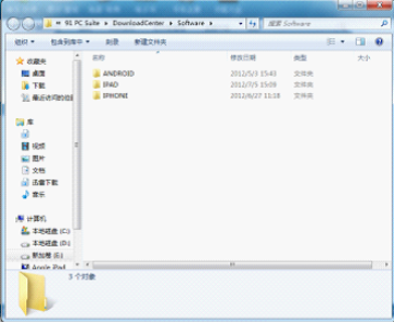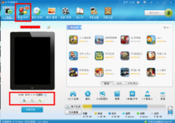 若双击游戏图标,桌面无法弹出提示安装的对话框,也不要担心。打开91手机助手,点击左上方的按钮【游戏.软件】,选择左边的工具栏,电脑上的软件【ios软件库】,
