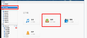 点击左边工具栏中的标签“已下载”,在右边的界面上,选择按钮【软件】,则在右边的界面上可以看到你之前下载在电脑里的应用。