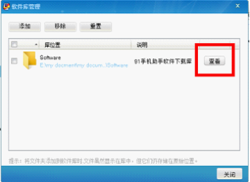点击右上方的“软件库管理”标签,弹出对话框。在对话框中选择查看文件夹,