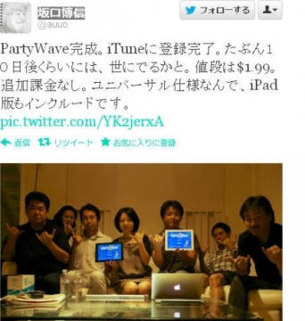 坂口博信表示其新作《Party Wave》已制作完成 来源: 飞翔小编feichenpan 2012/7/11 16:44:45 浏览量:427 作为最终幻想系列之父,坂口博信在其维特上表示其最新游戏作品《Party Wave》已经制作完成,将于十日后登入苹果iOS平台,目前游戏已经申请上架App Store,游戏以1.99美元,折合人民币12.6元左右的价格正式推出,并且没有后续收费。《Party Wave》这款游戏将对应iPhone及iPad。