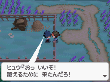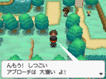 由于未获得冲浪和碎岩所以此路是一本 道,路上会遇到前作冠军阿迪克(以下简称阿爹哭)来随便搭讪(变态啊!),照面后冲过草丛来到サンギタウン(算木镇)