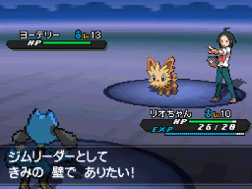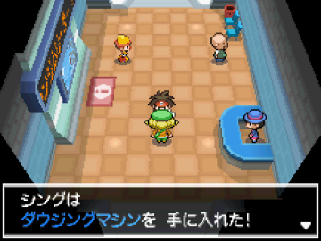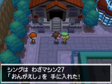 走出道馆发现贝尔前来表示祝贺并送给主角技能机器27报恩以及C-GEAR,并将自己切林还有博士的通信地址让主人公登陆了,这下下屏功能可以使用了,而大家谈论之际劲敌姗姗来迟前来挑战道馆,我们则离开桧扇市前往立涌市。