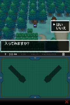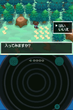 按A后可以进入,里面可能是一个道具(可能隐藏,不过位置固定为绿地中间一格),也可能是一只PM(必为隐藏特性)。