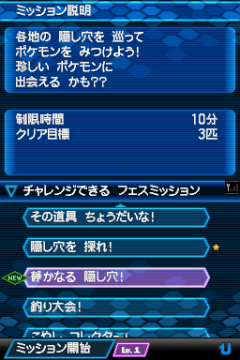 二、嘈杂的隱し穴(B2限定)/安静的隱し穴(W2限定) (10分钟内在隱し穴内遇到3只PM,需要完成上面的任务的Lv1后才出现;Lv2 10分钟内遇5只;Lv3 10分钟内遇10只)