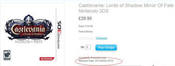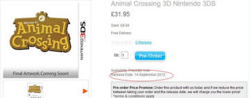 最近国外游戏购物网站thehut曝光了这两款3ds大作《恶魔城 命运之境》和《动物之森》的发售日,从其预购页面上的显示可以看出,《恶魔城 命运之镜》预定2012年10月5日发售,而《动物之森》的发售日期为2012年9月14日。