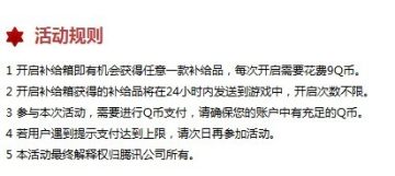 在7月25日到7月30日期间,玩家只需登录活动页面绑定自己的账号并花少量的Q币去开启补给箱就有机会获得一件给力的CF黄金道具。活动24小时向玩家开放,玩家可以随时补给自己所需的黄金道具。