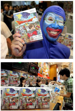 日本玩家喜迎国民级RPG游戏《勇者斗恶龙10》发售 来源: 飞翔小编feichenpan 2012/8/2 16:29:26 浏览量:367 今天8月2日是日本国民级RPG游戏《勇者斗恶龙10》的发售日,许多日本玩家为了喜迎游戏发售,早早地来到了位于涉谷的游戏发售活动现场,游戏的预购队伍已早早排起了长队,还有位玩家装扮成勇者斗恶龙系列中经典怪物“史莱姆”来购买游戏,当然还有不少妹子也来购买此作。 下面是今天活动的现场照片: