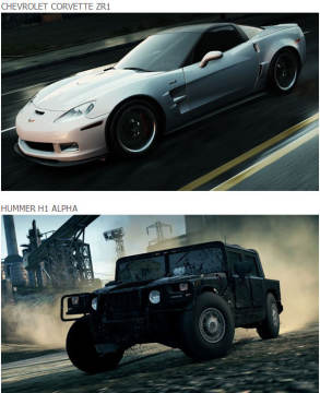 EA的赛车游戏新作《极品飞车17 最高通缉》现今公布了最新的名车宣传片,里面集中向玩家展示了游戏中的三辆名车:CHEVROLET CORVETTE ZR1、HUMMER H1 ALPHA和CHEVROLET CAMARO ZL1。游戏预计于10月30日登入PC、PS3和XBOX360平台。
