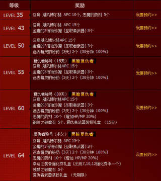 8月8日10:00—8月28日21:00,玩家可登录该活动页面预约在9月21日前复仇者角色要到达的等级,预约成功后可获得精美礼包1个。每个QQ号只可预约1个等级,请谨慎选择哟!